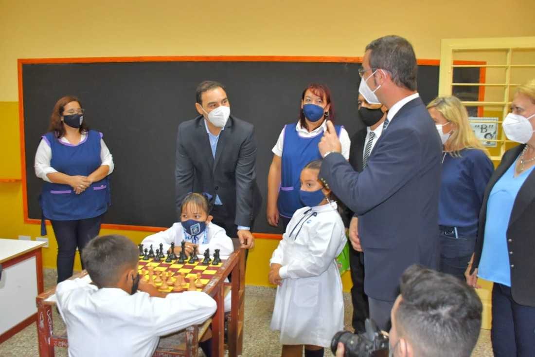 Asimismo, la cartera educativa hizo entrega al establecimiento de elementos sanitizantes para prevenir la propagación del Covid-19, como así también útiles y material bibliográfico correspondientes al Plan Lectura, para todos los niveles de la Escuela, además de elementos deportivos.